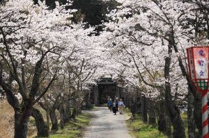 - 約1kmにわたる参道に咲き誇る桜は見事