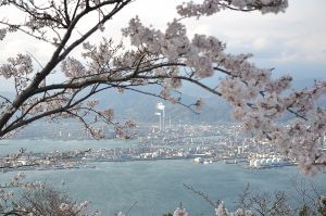 - 桜越しに眺める春の海