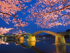 - 錦帯橋と桜が同時にライトアップ