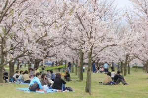 - 多くの花見客で賑わう場所