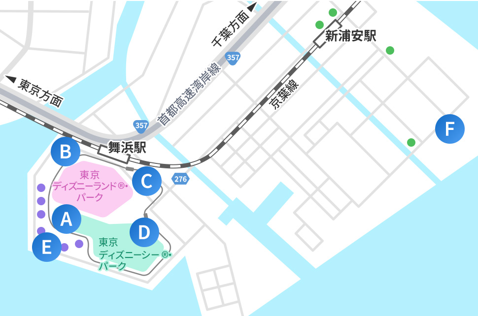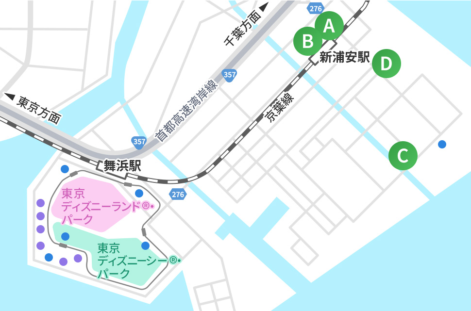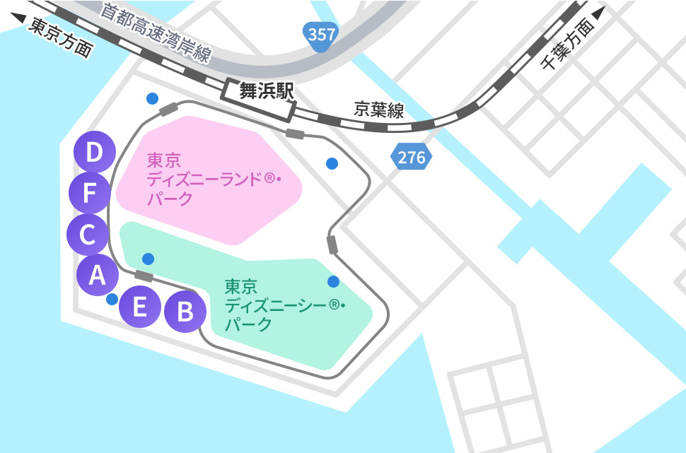 ※バスの時間帯によっては東京ディズニーランド®、東京ディズニーシー®以外にディズニーホテルや東京ディズニーリゾート®オフィシャルホテルの各ホテルに停車するバスもございます。