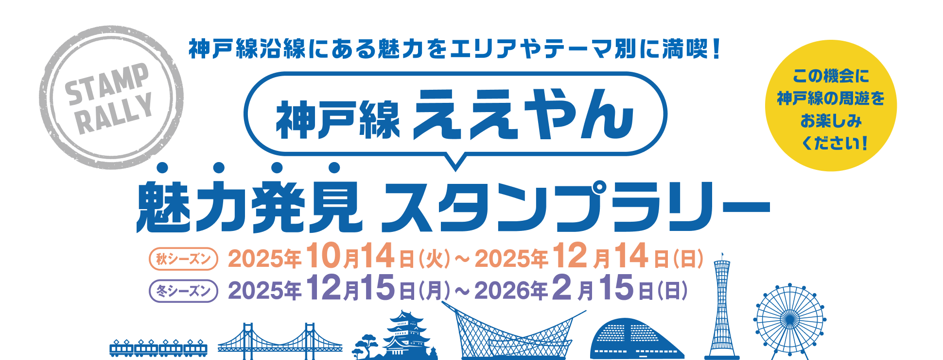 ※メールの件名は「神戸線ええやん魅力発見スタンプラリーについて」とご記載ください。 ※スタンプラリー実施期間(2025年4月14日~2026年2月24日)のみの運営となります。 ※ご返信には最大2週間程度要する場合がございます。予めご了承ください。