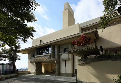 大正期、旧帝国ホテル建設のため来日していた近代建築の巨匠フランク・ロイド・ライトにより、灘の酒造家・八代目山邑太左衛門氏の別邸として設計された建物。1974年に国の重要文化財に指定され、1989年より一般公開。芦屋川から望む南斜面に沿うように建てられた外観、彫刻を施した大谷石、マホガニーの複雑な木組や銅板の飾り金具などにライトの建築の特徴を見ることができる。屋上からは、六甲の山並みや大阪湾の眺望も楽しめる。