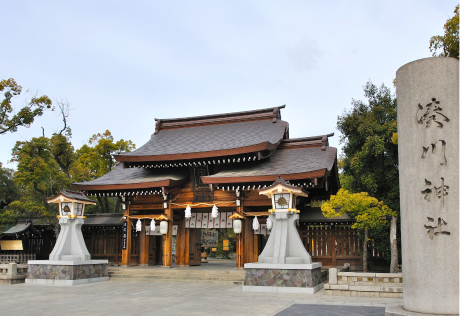 福の神「えびすさま」の総本社として知られる神社。創建時代は平安時代以前と伝えられ、正月・十日えびすには商売繁盛・家内安全を願う150万人の参拝者で賑わいます。また1月10日午前6時に行われる「開門神事福男選び」も有名です。