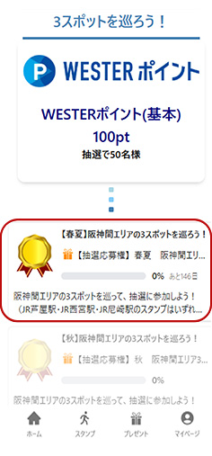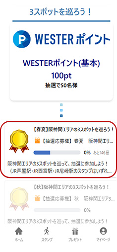 - スタンプ獲得に位置情報を使用しているため、事前にスマートフォンのGPS機能は「有効」、WESTERアプリの位置情報取得は「ON」にてしていただきますようお願いいたします。