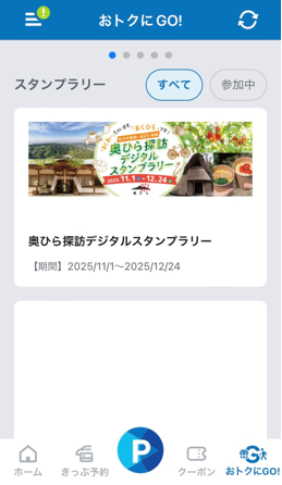 「おトクにGO!」ページ - 「タップしてスタート!」からスタンプラリーに参加!