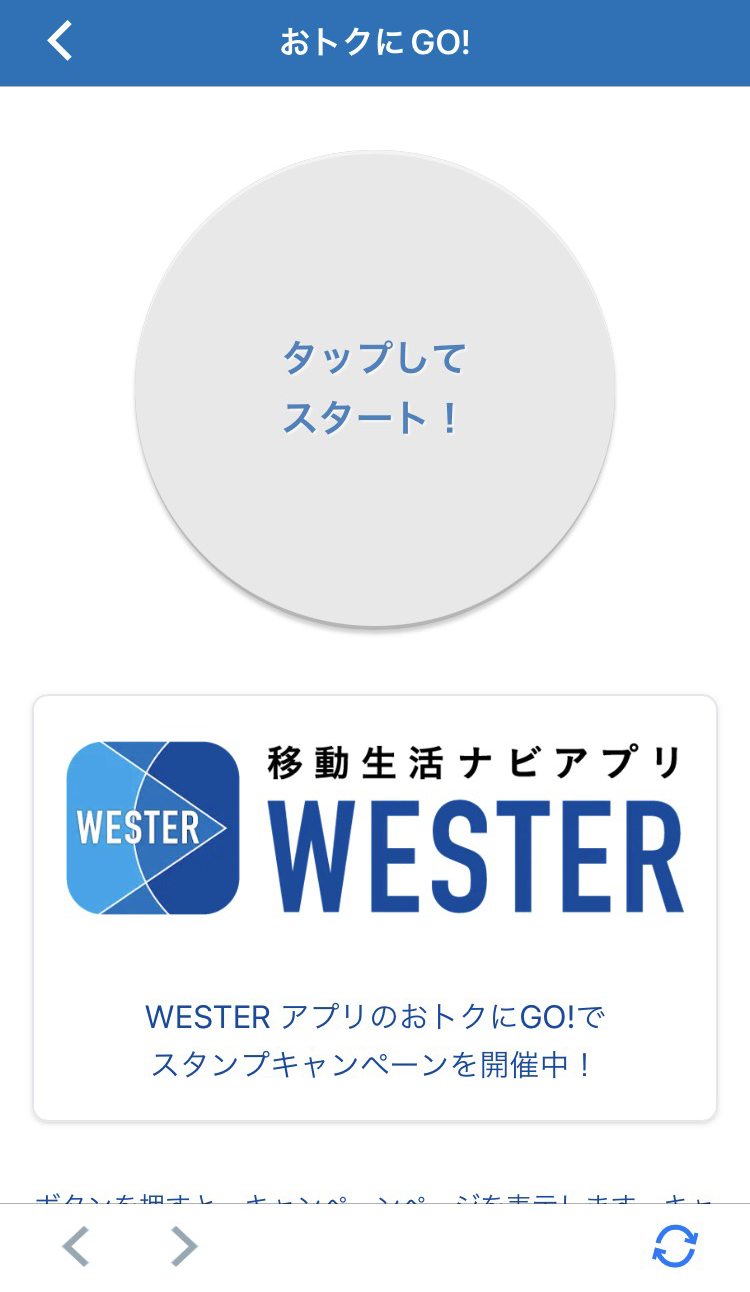 - WESTERホーム画面右下の「おトクにGO!」をタップ!