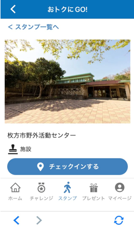 「スタンプ」ページ - 「チェックインする」をタップ!