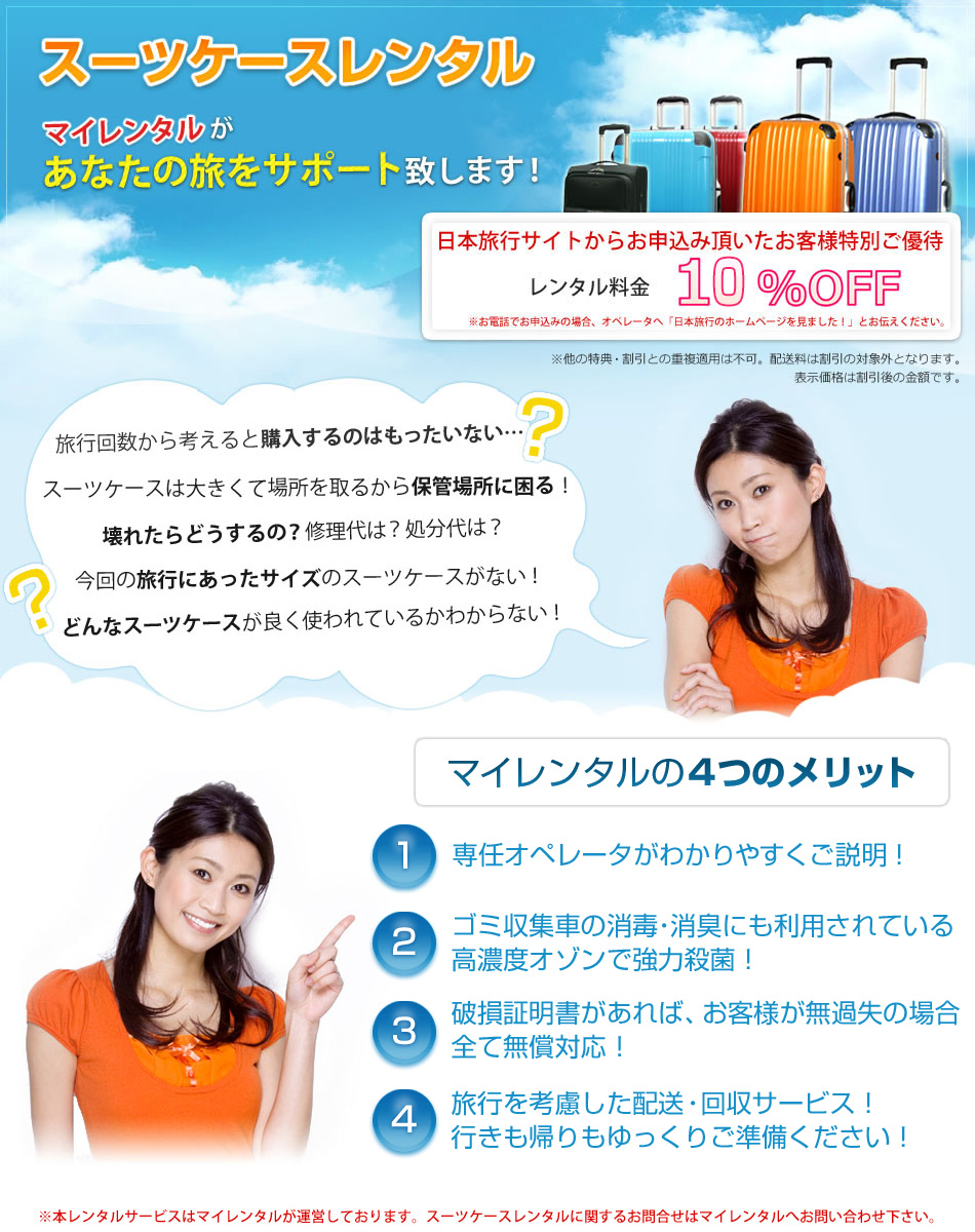 ※スーツケースレンタルに関しましてはマイレンタルへお問い合わせ下さい。