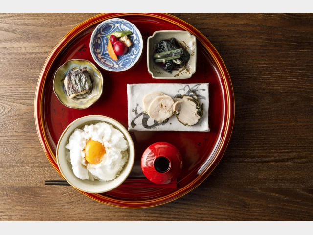 朝食【卵かけご飯セット】こだわりの「米屋」さんが選ぶ米を土鍋で炊き、能登鶏卵は白身をメレンゲ仕上げで