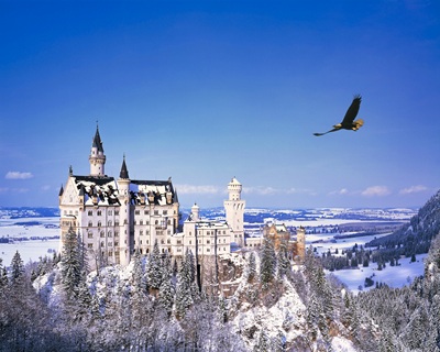 ルートヴィヒ2世が築いた白亜の名城。華麗な装飾の玉座の間や歌人の間など内部も見学します。観光後、ケンプテンへ。