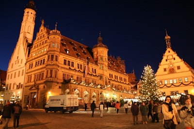 中世の街並みを背景にマルクト広場を中心に開かれるドイツでも特にロマンティックなクリスマスマーケットです。