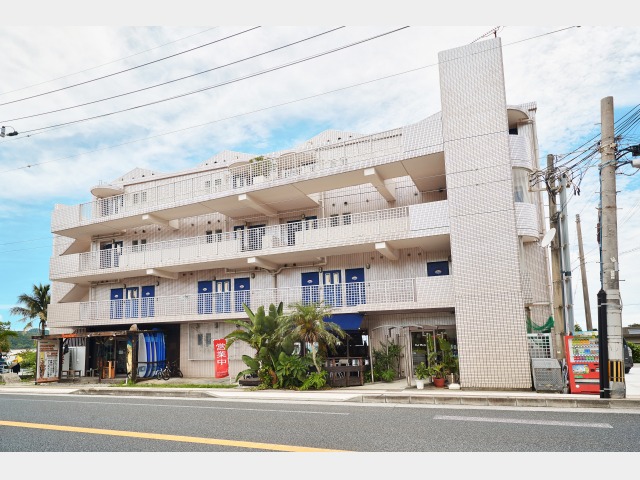 - ①路線バス:前兼久バス停下車徒歩1分/②リムジンバス:ムーンビーチホテル下車徒歩5分/③車:沖縄自動車道・石川ICよりお車で約5分