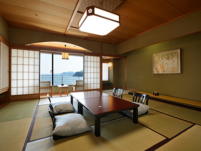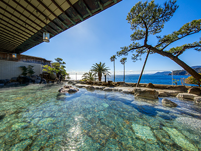 日常では感じられない"心のおもてなし"を大切にし、旅の疲れを心地よく癒します。 稲取り温泉の良質な温泉を使用、海に面した露天風呂の開放感溢れた眺めが心と身体を癒します。