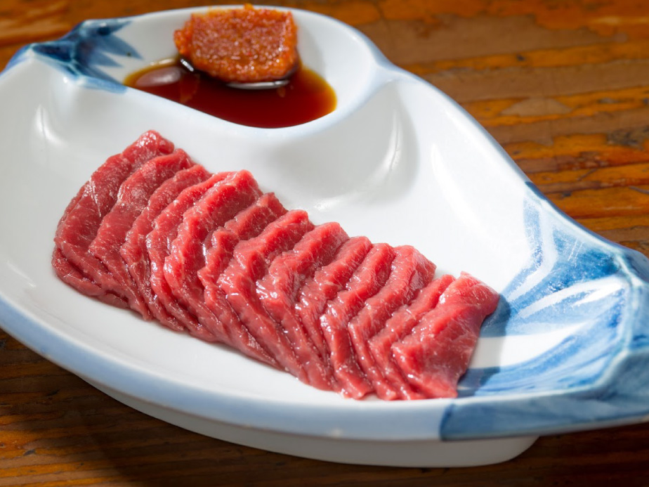 会津では脂身のない赤身の馬刺しが主流で、からし味噌をつけて食べる独特のスタイルが特徴です。