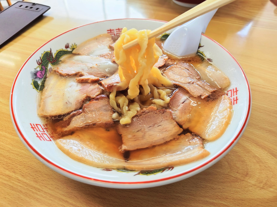 福島県喜多方市発祥の日本三大ラーメンの一つで、加水率の高い太い平打ち縮れ麺が最大の特徴です。スープは醤油ベースが基本で、それぞれの店舗で味わいが異なります。