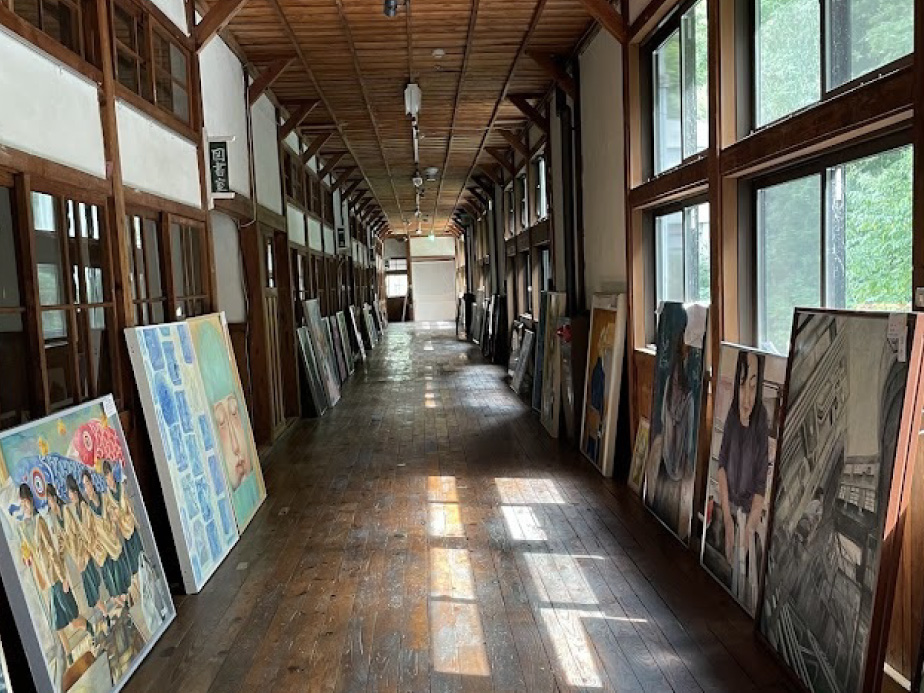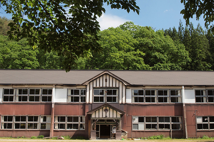 西会津国際芸術村は、旧新郷中学校の木造校舎を活用したフルクテアタラシイ山の暮らしを創造するためのクリエイティブセンター。期間限定など時期により作品が異なるのも魅力です。