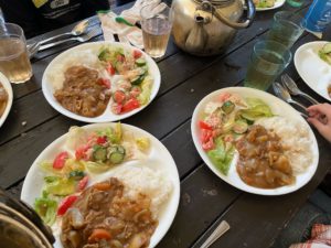 夕食はカレーづくり。炊事も2日目となるとみんな作業にも慣れてきて、友達と声を掛け合いながら美味しいカレーを完成させていました。