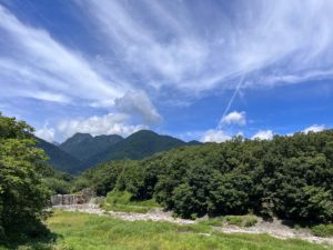 どちらのコースもみんなで楽しくお話ししたり、歌ったりしながら2時間ほど歩くと素晴らしい景色を見ることができます。写真はハイキング途中の光景。ゴールはこれよりもっとステキな景色です。ぜひお子さんが帰ってきたら何が見れたのか聞いてみてください。