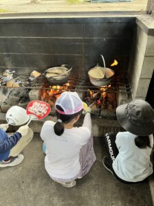 今日は各グループ「鍋持っていくね!」「野菜もう入れていいよ!」「火がついたよ!」等々1日目の調理とは思えないほど声を掛け合いながら上手に調理を進めました。