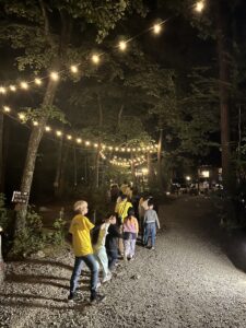 真っ暗な森の中を45分歩いてきました。川遊びキャンプ中級コースですので、しっかり森の中を歩きました。