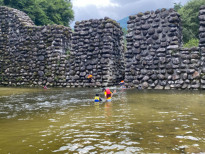 午前中は雲は広がりましたが、活動に支障なく。ニジマスつかみと川遊びを行うことができました。