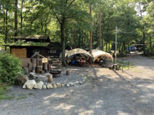12:45 キャンプ場に到着しました。渋滞で予定よりは遅れていましたが、バスの中は歌あり、遊びありのいい雰囲気で来れました。