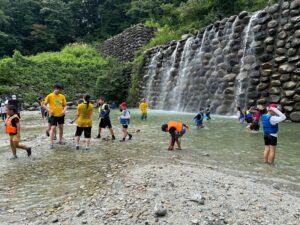 この後はニジマスのつかみ取り&川遊びに向けて身支度の時間です。