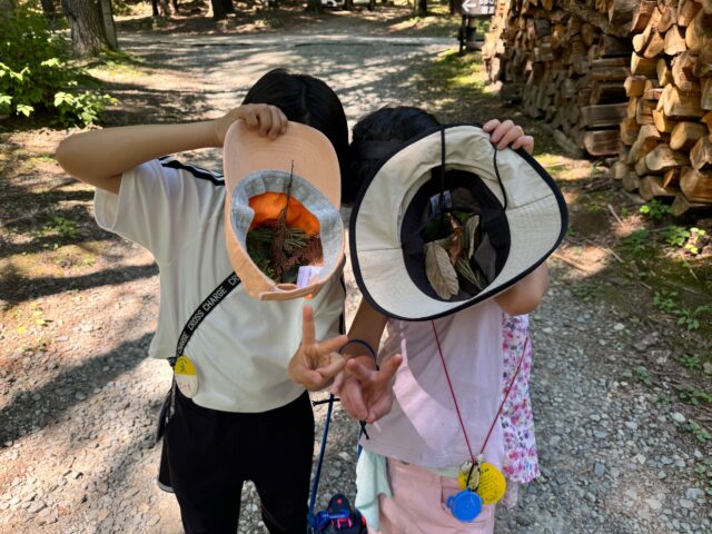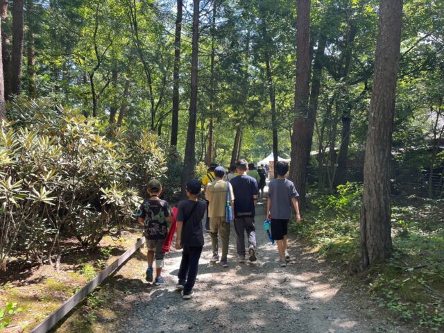 白州の思い出を持ち帰るためのクラフトづくり。そのパーツとなる白州の一部をひろいに探検に出かけました。