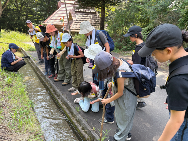 15:00更新。天気は晴れ。少々お疲れモードで帰ってきた探検隊。川コースは、グリコや栗拾いしながら楽しく歩いたそうです。山コースは最高の景色を体感し、帰り道も笹舟流し大会をしたそうです。