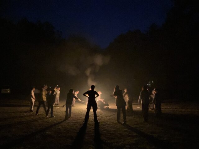 キャンプファイヤーの後、星が雲間からのぞいていたので少しだけ星空観察をしました。今日は少しだけ夜更かしの21:30消灯になりました。最終日も元気に過ごせるといいですね。おやすみなさい。