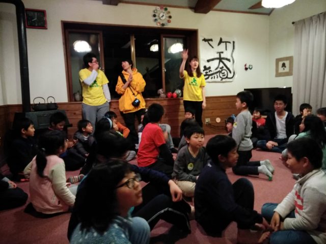 19:20から、みんなが楽しみにしていたゲーム大会を実施(写真)。32人の熱気でホールはむんむんです。どちらのチームが優勝するのでしょうか?20:10