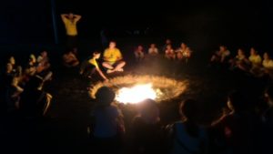 キャンプファイヤーで盛り上がり、入浴の後は、ストーリータイム。21:00