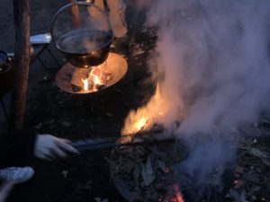 18:00 美味しいご飯をたき火を囲んでみんなで食べました。やっぱりたき火の前で食べると身体も温まります。