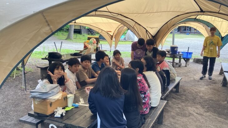 おはようございます。村長のひっしーです。 キャンプ場は、夜中から数時間、雨が降りました。雨音のせいでよく眠れなかったという子もいますが、みんな元気です。 今朝の天気は曇り。朝のつどいでは、ちょっと変わ […]