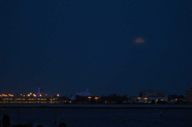 あきらめて、機材を片づけて帰ろうとしたら、再び現れた月に慌ててカメラを構えました。