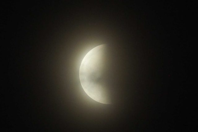 月が見えた!(中央からやや右上)と思ったら、すぐに雲に隠れて・・・21時頃までその姿を拝むことはできませんでした。