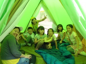 イマドキのテントを立ててみるのを楽しみに、案内チラシを持ってお父さんと来てくれたあなた・・・ありがとね!