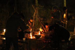 山や森では、夏でも日が暮れると気温が下がるよね。火をおこしてあたたまろう!