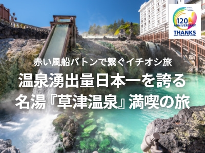 (THANKS MORE CONNECTED FUTURE) - 日本旅行は、120年間、多くのお客様と地域の皆さまに支えられてきました。この「ありがとう」の気持ちを未来につなげていきます。創業からこれから先の未来もお客様と地域、自然、文化との「つながり」を深め、感動・喜びを共有することで、地域の特色ある観光資源を大切にします。この先も、環境や地域に優しい旅をお届けし、みんなの笑顔が広がる「もっともっとつながる未来」を皆さまと一緒に楽しみましょう!