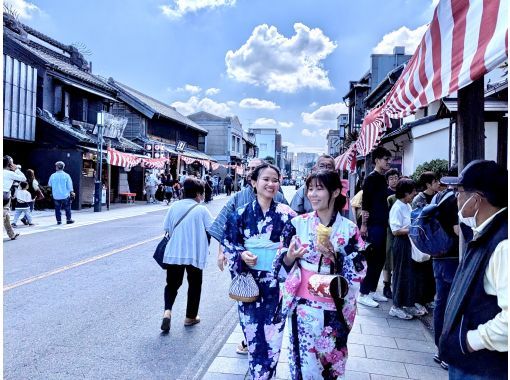 雨の日は傘も無料レンタル。店内や観光地での撮影オプションも人気です。