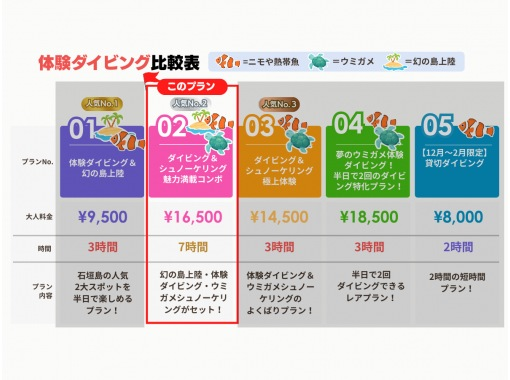 A. その日の天候や海況により変わるため、当日の朝に決定します。幻の島・ウミガメ・マンタ・珊瑚など、ベストなスポットを選んでご案内します。