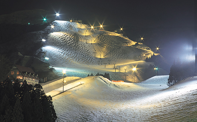 全体の80%が初・中級者向けの緩斜面が充実していてゲレンデデビューに最適!日帰り温泉施設も備えておりアフタースキーも満喫。