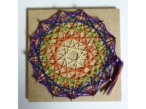 色鮮やかな糸かけ曼荼羅木製10センチ角と