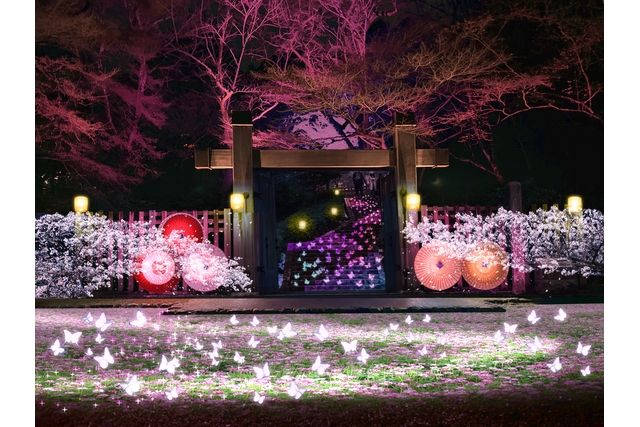 ぎふ灯り物語2026,国の伝統的工芸品にも指定されている正法寺に今年も岐阜和傘・岐阜提灯等を用いた”岐阜市ならでは”のライトアップイベント『ぎふ灯り物語』。 今年も岐阜公園〈信長公居館跡〉と幻想的な空間が立ち上がります! 6回目を迎える今回のテーマは「百花繚乱」 冬の岐阜公園にお花畑や桜とともに、光の蝶も出現し幻想的な光景が広がります。 岐阜公園エリア周辺にはキッチンカーも出店!,,