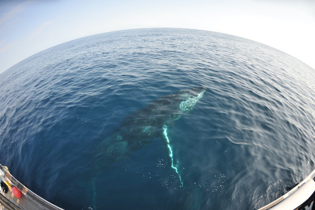 当プランでは、1日出港します。お昼は船中で頂きます。巨大なクジラが泳ぐ姿は、圧巻の光景!その目に焼き付けていってくださいね。尾ひれを水面を叩きつける「テールスラップ」・体を水面から出す、大迫力の「ブリーチ」など、様々なアクションが見られることもあります!