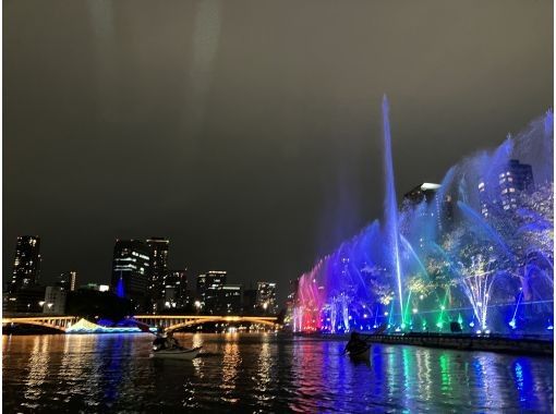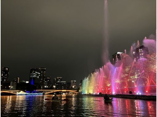 ナイトカヤックツアーではEXPO期間限定の2025年4月よりOsakaリバーファンタジー水と光の幻想的な世界の演出をカヤックの上から楽しんでいただけます。