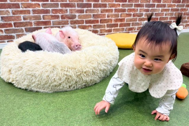 自由気ままなマイクロブタたちと過ごす、ちょっぴり特別なひととき,自由気ままなマイクロブタさんと触れ合えるカフェです。 自由で緩いマイクロブタさんとの癒しの空間をお楽しみ下さい。 ふれあったら、 きっと恋しちゃう。 ペットとして人気上昇中のマイクロブタたち。 つぶらな瞳や人懐っこいしぐさにふれてしまったら… もうお肉は食べられないかも!?,,
