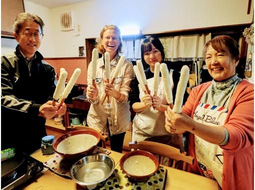 ご飯をつぶして「たんぽ」を作るところからの【本格きりたんぽ鍋】体験。