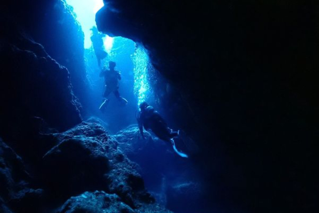 宮古島の海!そこには、たくさんの水中洞窟があります。
